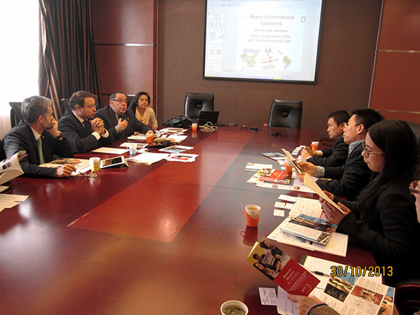 10月30日上午10点,西班牙纳瓦拉公立大学副校长Alfonso Carlosena 和国际关系副校长Javier Casali来浦京集团官网进行友好访问,随同的还有纳瓦拉大学亚洲区经理Luis Hernandez及驻北京代表处的工作人员。副院长吴韬、院长助理沈建以及浦京集团官网国际事务助理杨老师、学校国际事务办公室郭老师接待了来访客人。