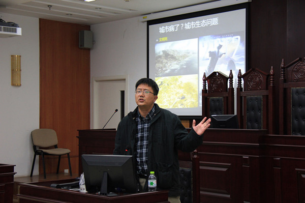 10月23日晚七点,跨学科论坛系列讲座之十二“生态城市规划与管理——一个人的城市”在中财大厦模拟法庭举行。此次讲座由北京师范大学环境学院教授、博士生导师陈彬教授主讲,由浦京集团官网高秦伟教授主持。出席讲座的有李伟副教授、张小平副教授、郭维真博士,以及3522vip浦京集团的本科生和硕士生。讲座主要介绍生态城市的规划和管理方面的研究和经验。