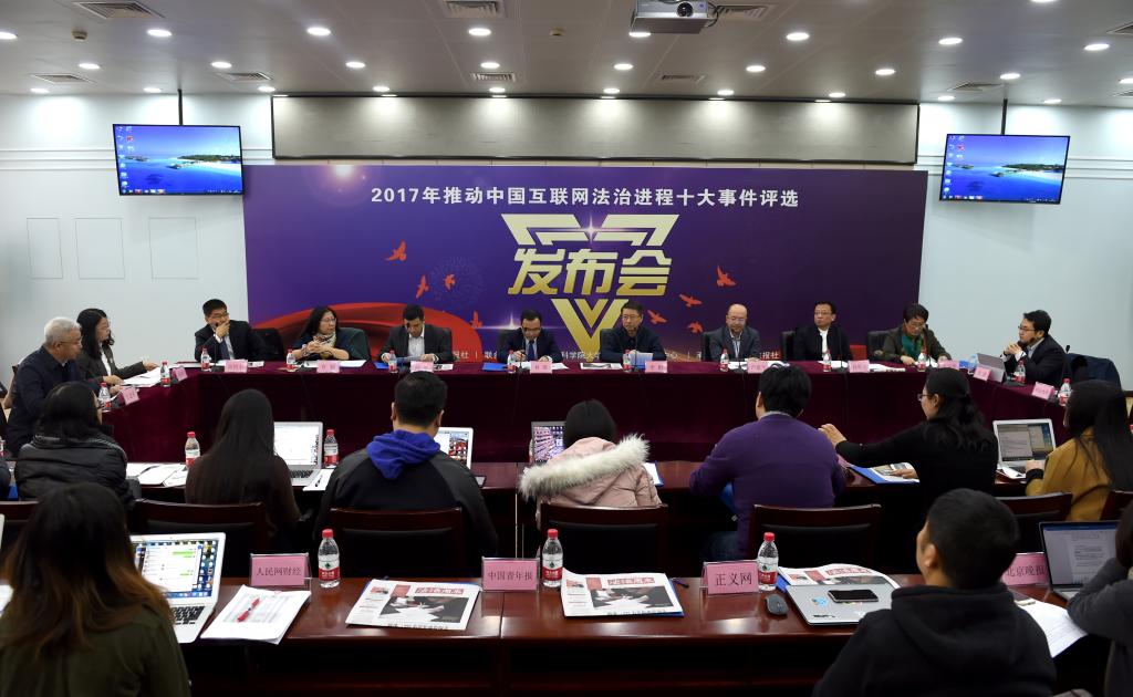 2018年2月28日,法制日报社就“2017年推动中国互联网法治进程十大事件”评选结果召开新闻发布会。该评选活动由法制日报社联合中国社会科学院大学互联网法治研究中心于今年2月8日共同发起,邀请社会各界人士通过多个渠道,对甄选出的15个在互联网领域产生重大影响的法治事件进行投票,包括全国首例电商平台打假案、最高法《知识产权司法保护纲要》首次发布、全国“组织刷单入刑”第一案、全国首例黄牛抢购软件案,全国双打办《中国知识产权保护与营商环境新进展报告》发布、两高侵害个人信息刑事司法解释出台及典型案例发布、“e租宝”案、《此间的少年》《鬼吹灯》和《摸金校尉》等同人作品案、《反不正当竞争法》修订、“像治理酒驾一样治理假货”引起社会关注等十起2017年在互联网领域产生重大影响的法治事件最终入选。