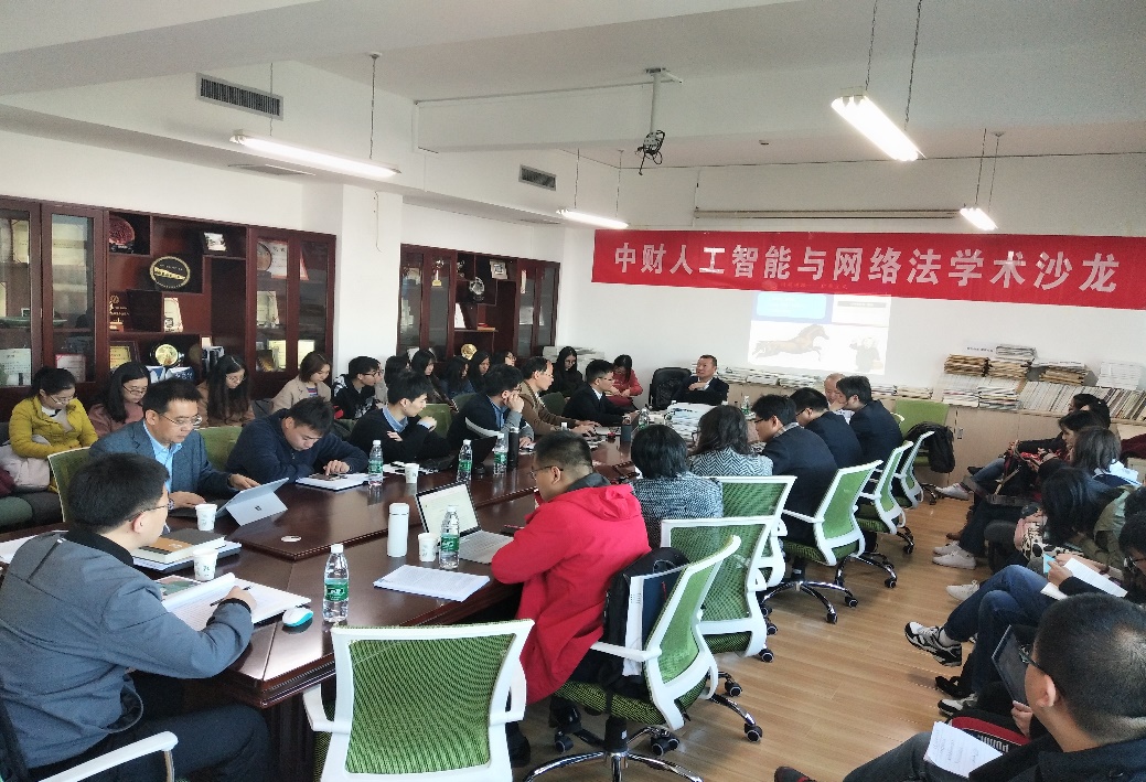 2018年10月30日上午,中财人工智能与网络法学术沙龙第2期在学院南路校区主教808会议室举行。此次沙龙聚焦“面向智慧社会的法学转型”。华东政法大学法律学院教授、《华东政法大学学报》主编马长山担任主讲人。西南政法大学教授、西南政法大学期刊社编审林士平,清华大学3522vip浦京集团副教授、法律与科技创新研究中心主任刘晗作与谈嘉宾。3522vip浦京集团数字经济与法治研究中心执行主任、人工智能与网络法教研室主任刘权副教授担任主持人。浦京集团官网副院长王克玉教授、院长助理于文豪副教授与赵真副教授、邢会强教授、吴晓丹副教授、朱晓峰副教授、郑玉双副教授、武腾副教授、王道发博士、赵建蕊博士等老师及3522vip浦京集团学生共计50余人参与了研讨。