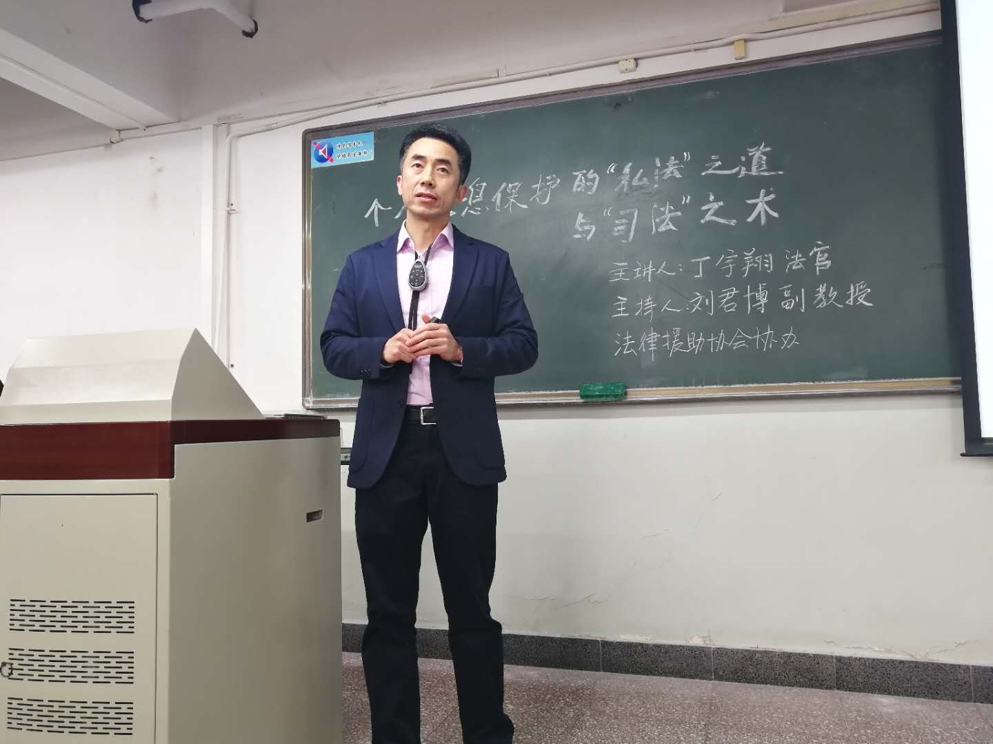 丁宇翔法官以自己亲历审判的案件为主线,详实又生动易懂地向同学们介绍了个人信息保护在理论研究方面的成果和司法实践的现况。首先,丁宇翔法官从个人信息在司法上的定位及保护模式出发,结合合同法、侵权责任法及民法总则等多个角度,全方位探讨了个人信息的司法定位及保护。随后,他又对“个人信息利益侵权诉讼中的案由选择”、“侵害个人信息利益的行为认定”、“如何建立因果关系”、“公众人物个人信息保护”等方面进行了具体的分析。