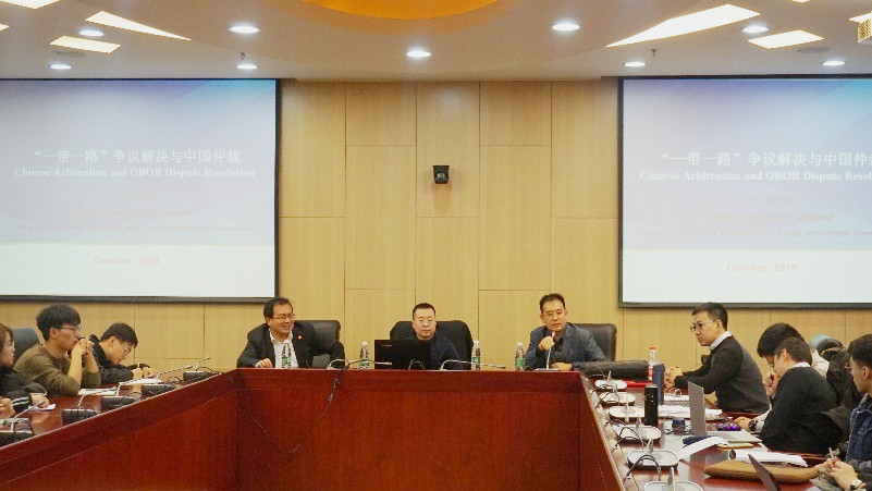 2018年11月7日晚,“法治中国论坛”系列讲座之“一带一路”争议解决与中国仲裁的专题报告,在3522vip浦京集团学术会堂604室如期举行。中国国际经济贸易仲裁委员会党委书记、副秘书长李虎博士到场作报告,浦京集团官网院长尹飞教授、刘君博副教授、沈健博士、时业伟博士出席报告会,浦京集团官网研究生、本科生到场聆听了报告。报告由浦京集团官网副院长王克玉教授主持。