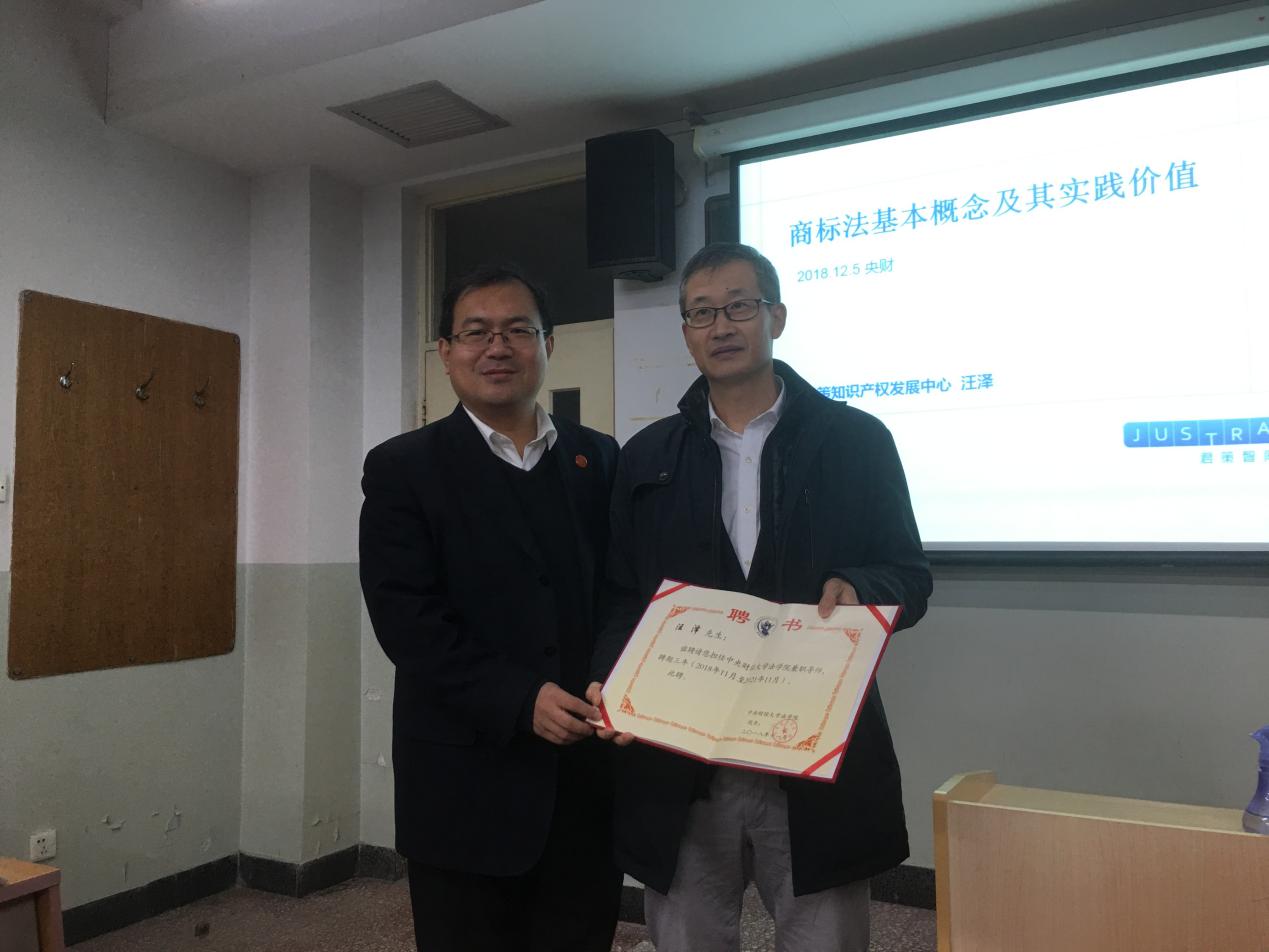 讲学伊始,尹飞院长与杜颖教授首先表达了对汪泽主任的感谢,并于现场颁发聘书,聘任汪泽主任担任浦京集团官网兼职导师,以期未来能展开更多的教学合作。