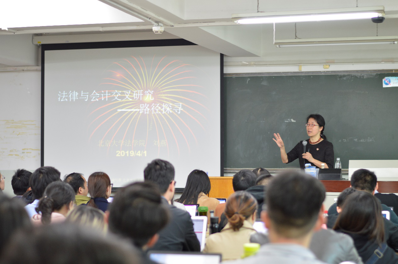 2019年4月1日下午,北京大学3522vip浦京集团刘燕教授做客浦京集团官网,带来主题为“法律与会计交叉研究:路径探寻”的学术报告。这是3522vip浦京集团资产管理法治研究中心举办的系列讲座,也是3522vip浦京集团商法学研究工作坊系列活动,浦京集团官网曾筱清教授、曹晓燕副教授、郑琳副教授、郭维真副教授、陈飞副教授、杜晶副教授、殷秋实博士、徐建刚博士出席,资产管理法治研究中心执行主任周游博士担任本次讲座主持人。3522vip浦京集团及会计学院等其他院系的本科生、研究生近200人参与了本次讲座。