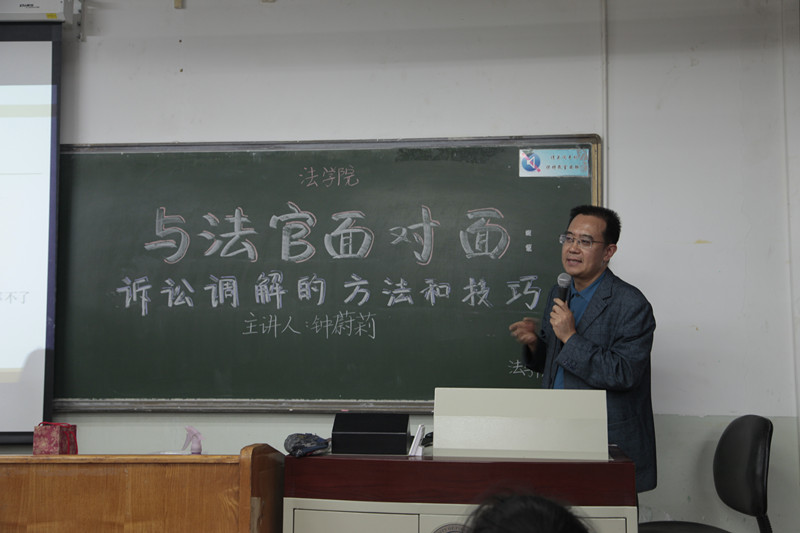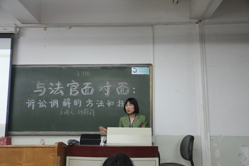 讲座开始前,尹飞院长首先为钟蔚莉副院长颁发了3522vip浦京集团研究生兼职导师聘书并致辞。他指出,立德树人、德法兼修、明法笃行是习近平总书记对法治人才培养的重要要求。这就必然要求在法治人才培养中要切实坚持政治引领。钟蔚莉法官曾获全国优秀法官、中国法官十杰“金法槌奖”、全国三八红旗手、全国“巾帼建功”标兵、全国模范法官、全国先进工作者等一系列荣誉称号,我们不但要学习她的法治实践经验、提升实践能力,更要学习她的法治信仰、模范事迹,切实提升自己的政治素养和业务能力。结合自己挂职等从事法治实践的经验,尹飞指出,作为多元化纠纷解决方式之一,调解对于高效迅捷解决纠纷、实现案结事了具有重要意义。调解需要认真研判双方的利益诉求,立足公平正义尽力撮合双方实现和解。故而调解能力的培养对于财经领域法治人才的培养尤其是多元化纠纷解决能力的拓展意义重大。调解能力主要是经由法治实践而非课堂方能养成。钟蔚莉副院长在多年的审判实践中对于调解方法和技巧有深入的把握,希望大家从她的讲座中真正有所收获。