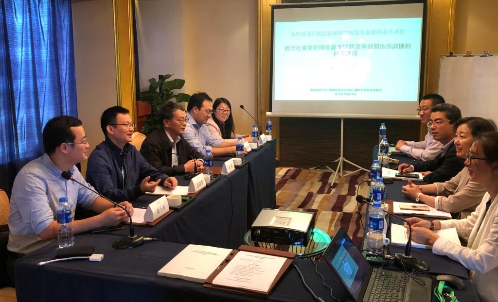 2019年10月21日,浦京集团官网沈建峰教授主持的澳门特别行政区政府政策研究和区域发展局委托课题“现代社会劳动关系基本问题及劳动关系协调机制研究”结项评审会在珠海市成功举行。澳门特别行政区政府政策研究和区域发展局局长米健教授、其他结项评审专家以及课题组成员出席会议。