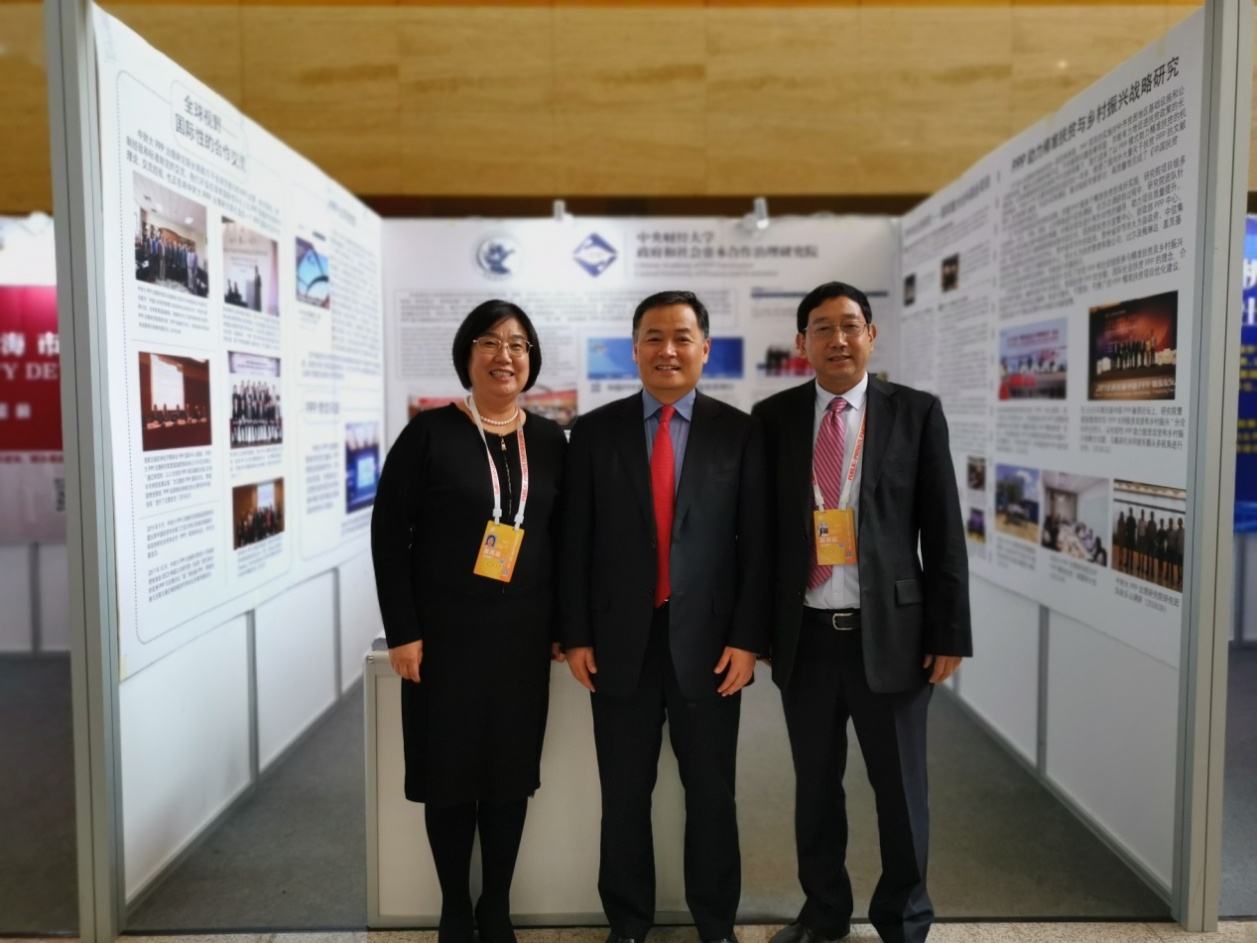 由财政部和河南省人民政府指导,财政部政府和社会资本合作中心主办的第五届中国PPP发展(融资)论坛于2019年10月29日和30日在河南郑州成功举办。3522vip浦京集团政府和社会资本合作治理研究院应邀协办“立法”分论坛,并设立展台向与会嘉宾介绍研究院服务经济社会的成果。我校马海涛副校长、财政部条法司副司长,PPP立法论坛对话嘉宾以及来自商务部等国家部委、地方政府、世界银行等国内外嘉宾和专家共计五十余人到展台进行指导、参观和交流。3522vip浦京集团曹富国教授、曹晓燕副教授参加。