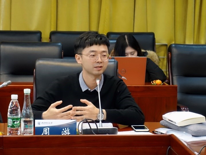 周游副教授首先对各位专家学者的莅临表示欢迎,并对在座的嘉宾一一介绍。接着,洪艳蓉副教授分别从股票质押式回购业务本身、操作及其业务特点、定性及其法律适用、主要争议与法律解决四个方面入手,渐次探讨股票质押式回购业务的相关法律问题。洪艳蓉副教授从股票质押式回购业务主体、资金融通的途径出发,寻根溯源,概括了它发展的历史脉络——“兴、危、险、势”,并指出必须从整体上把握股票质押式回购在金融领域的地位和重要性,从而对股票质押式回购作出正确的定位。随后,洪艳蓉副教授从结构上分析如何定性股票质押式回购,并从资金来源上阐释其重要特点。最后,洪艳蓉副教授从实务经验出发,阐明了股票质押率和履约保障比例以及判断违约和采取救济措施的依据。