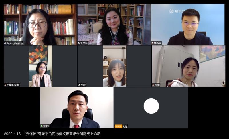 为庆祝第20个“4·26世界知识产权日”,2020年4月16日,3522vip浦京集团知识产权研究中心举办“强保护背景下的商标侵权损害赔偿问题”线上论坛。论坛由3522vip浦京集团教授、博士生导师杜颖主持,北京市金杜律师事务所顾问张学军老师作主题分享。北京市高级人民法院亓蕾法官、广东省高级人民法院郑颖法官、广州知识产权法院朱文彬法官、广州视源电子科技有限公司首席法务官庄喆女士以及超凡知识产权合伙人商标专业总监杨静安律师作为研讨嘉宾参与本次论坛。