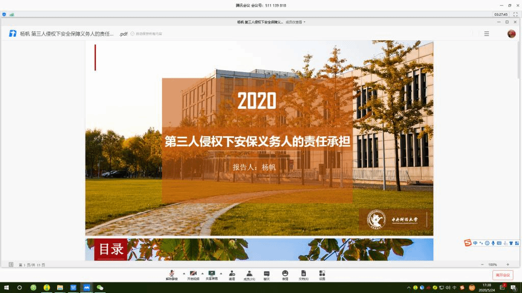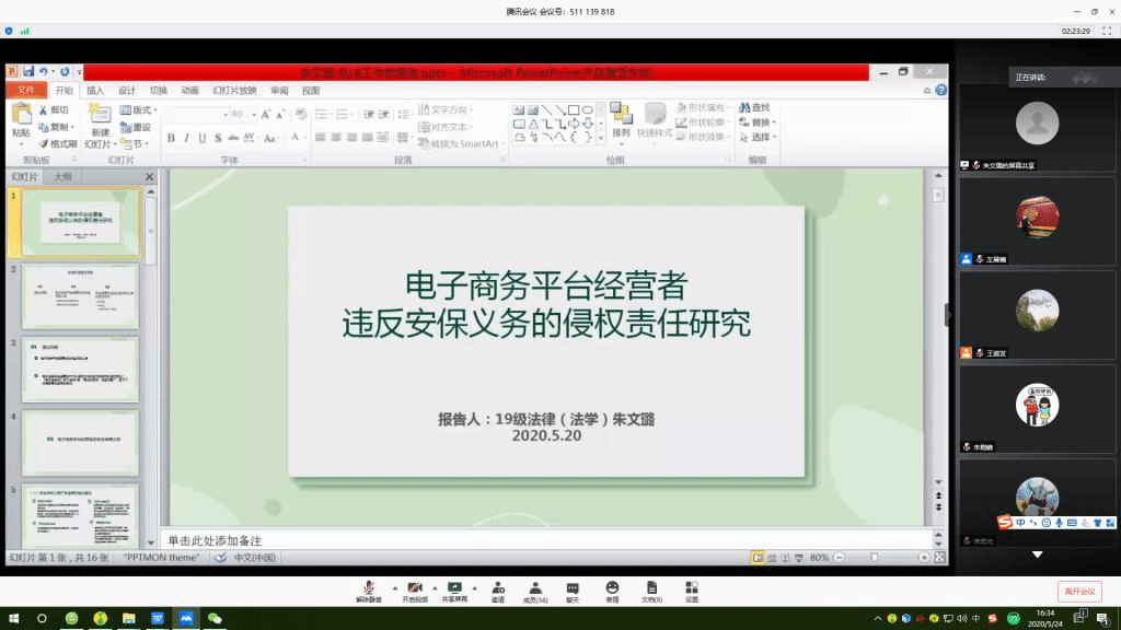 2020年5月24日下午,浦京集团官网第20期私法工作坊以在线会议的方式如期举行。活动由浦京集团官网王道发博士主持,朱晓峰副教授、王叶刚副教授、武腾副教授和徐建刚博士作为指导老师参与了本次活动。工作坊活动主要由指导老师引导、发言人展示、其他成员评议、自由讨论以及指导老师总结等环节构成。本次活动共有30余名师生参与报告与讨论。
