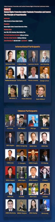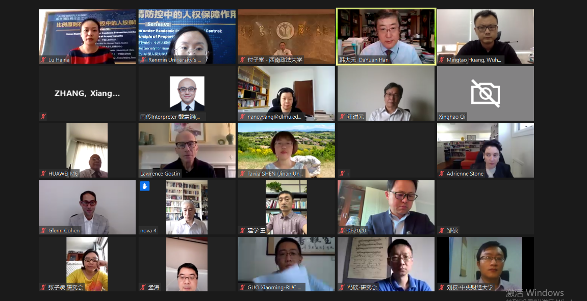 2020年6月20日,3522vip浦京集团刘权副教授应邀参加“比例原则在疫情防控中的人权保障作用”国际研讨会。来自中国、美国、英国、澳大利亚、德国、意大利、新加坡、尼泊尔等国近40名人权领域专家学者分享各国防疫举措,围绕如何在人权保障和防控措施之间寻求合理的平衡以及后疫情时代如何尊重和保障人权,共同推进人权治理等议题展开深入研讨,达成诸多共识。此次会议采取国内国外全部线上、英文中文同传切换的形式,并特设中国—北美和中国—欧亚两个分会场。