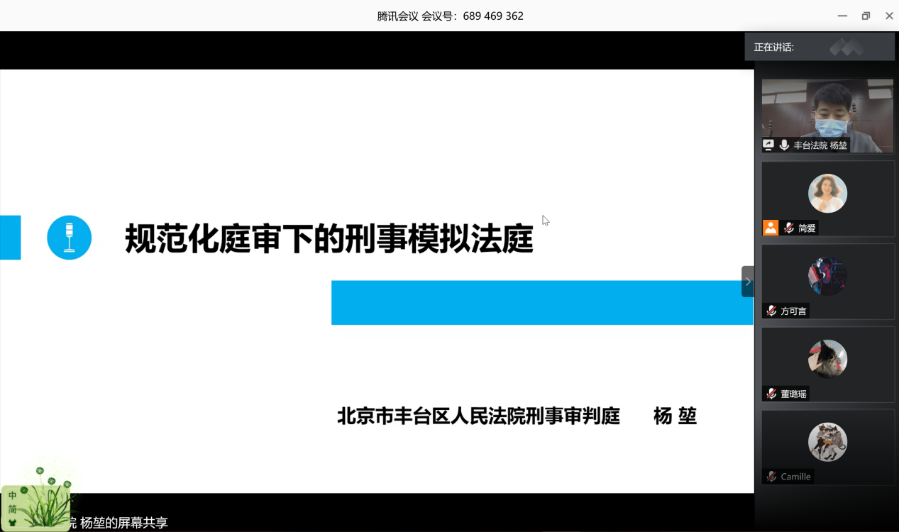 本次刑事法律诊所课程分为实务专家指导和模拟法庭考核两项进行。来自北京市丰台区人民法院的杨堃法官、法官助理陈嘉森及北京市人民检察院第一分院检察官助理张洋等多名一线实务专家助力浦京集团官网实践课程建设。课程开设过程中,实务专家们或通过讲座讲授刑事审判实务中的前沿问题,或通过微信线上交流为同学们答疑解惑等多样形式,对学生进行课程指导。