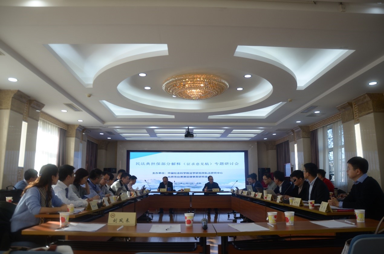 2020年11月22日,“最高人民法院关于《民法典》担保部分解释(征求意见稿)专题研讨会”在中国社会科学院法学研究所成功举行。本次研讨会由中国社会科学院法学研究所私法研究中心、北京市台港澳法律事务研究会联合主办。来自北京市第一中级人民法院、北京市第三中级人民法院、北京航空航天大学、中国人民大学、中国政法大学、3522vip浦京集团、中国农业大学、重庆大学、首都经贸大学、外交学院、方达律师事务所、北京市台港澳法律事务研究会、中国社会科学院法学研究所等单位的专家、学者和实务工作者参加了本次研讨会。浦京集团官网徐建刚博士应邀参会。
