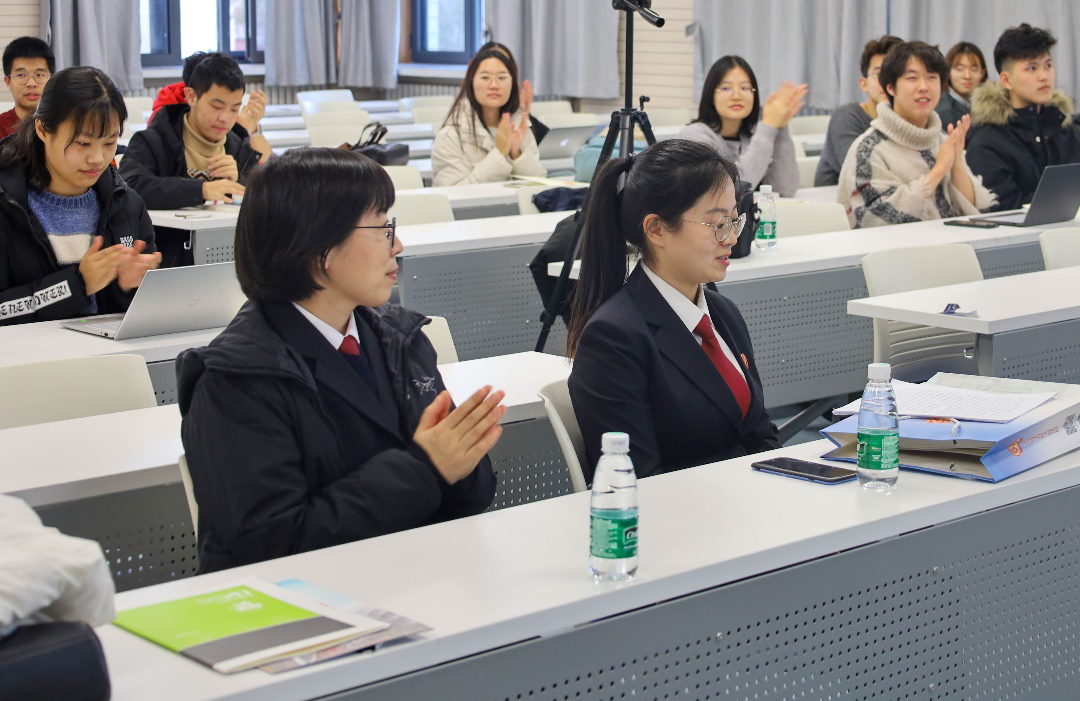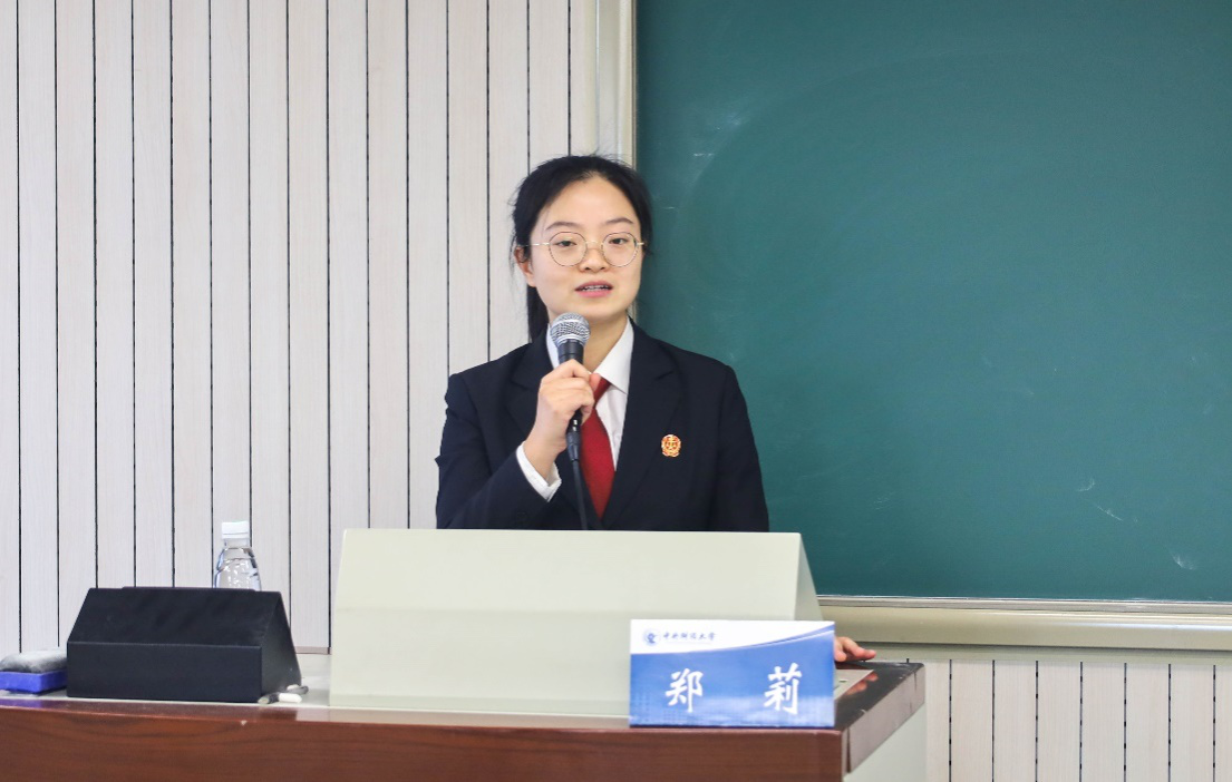 讲座伊始,郑莉法官助理结合亲身经历的案例,使同学们对执行法官工作形成了初步认识。作为执行法官,她曾参与河南省万吨粮食强制执行案件,也曾在台风山竹席卷的情形下远赴广东解决三百多个农民工的薪酬问题。她谈到,在这五年的执行法官工作中,时时刻刻都感受到身为法官的使命感。