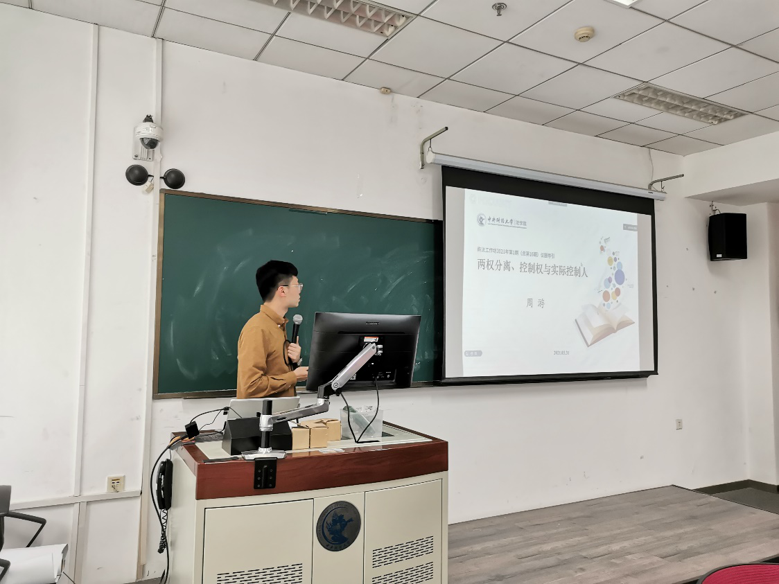 2021年3月31日下午,本年度商法工作坊第1期(总第16期)在3522vip浦京集团学院南路校区中财大厦案例教室1举行。此次活动主题是研读《所有权与控制权:英国公司演变史》一书以及讨论“实际控制人”议题。西南政法大学民商3522vip浦京集团林少伟教授作为特邀嘉宾,3522vip浦京集团周游副教授作为指导老师参与了本次活动。工作坊主要包括指导老师引导、特邀嘉宾分享、发言人展示、参会者提问、发言人答疑以及指导老师总结等环节,并穿插抽奖赠书活动。此次活动共有60余名校内外师生及业界人士以线上、线下相结合方式参与讨论。