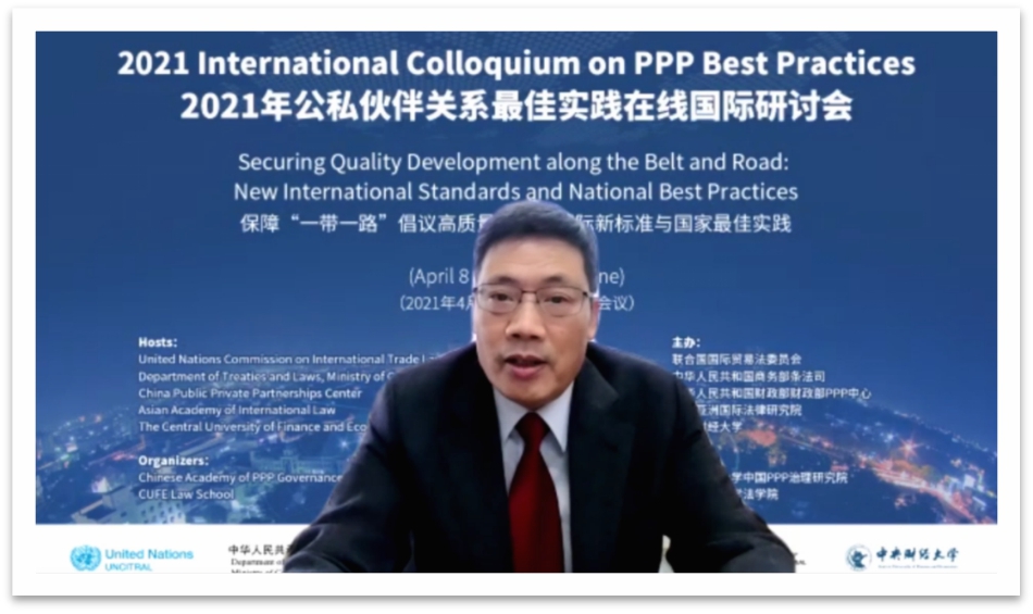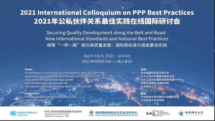 4月8日、9日,由联合国国际贸易法委员会、中华人民共和国商务部条法司、中华人民共和国财政部政府和社会资本合作中心、亚洲国际法律研究院和3522vip浦京集团联合主办,3522vip浦京集团政府和社会资本合作治理研究院、3522vip浦京集团承办的2021年公私伙伴关系最佳实践国际研讨会在北京隆重召开。受新冠肺炎疫情影响,本次研讨会以线上会议的形式进行。研讨会的主题是“保障‘一带一路’倡议高质量发展:国际新标准与国家良好实践”。在两个半天的会期里,与会嘉宾围绕政府和社会资本合作(PPP)立法和PPP全生命周期的相关问题展开了深入而富有价值的对话交流,分享了PPP项目高质量发展的有益经验。来自全球5大洲近60个国家和地区的350多名观众参加了本次会议。