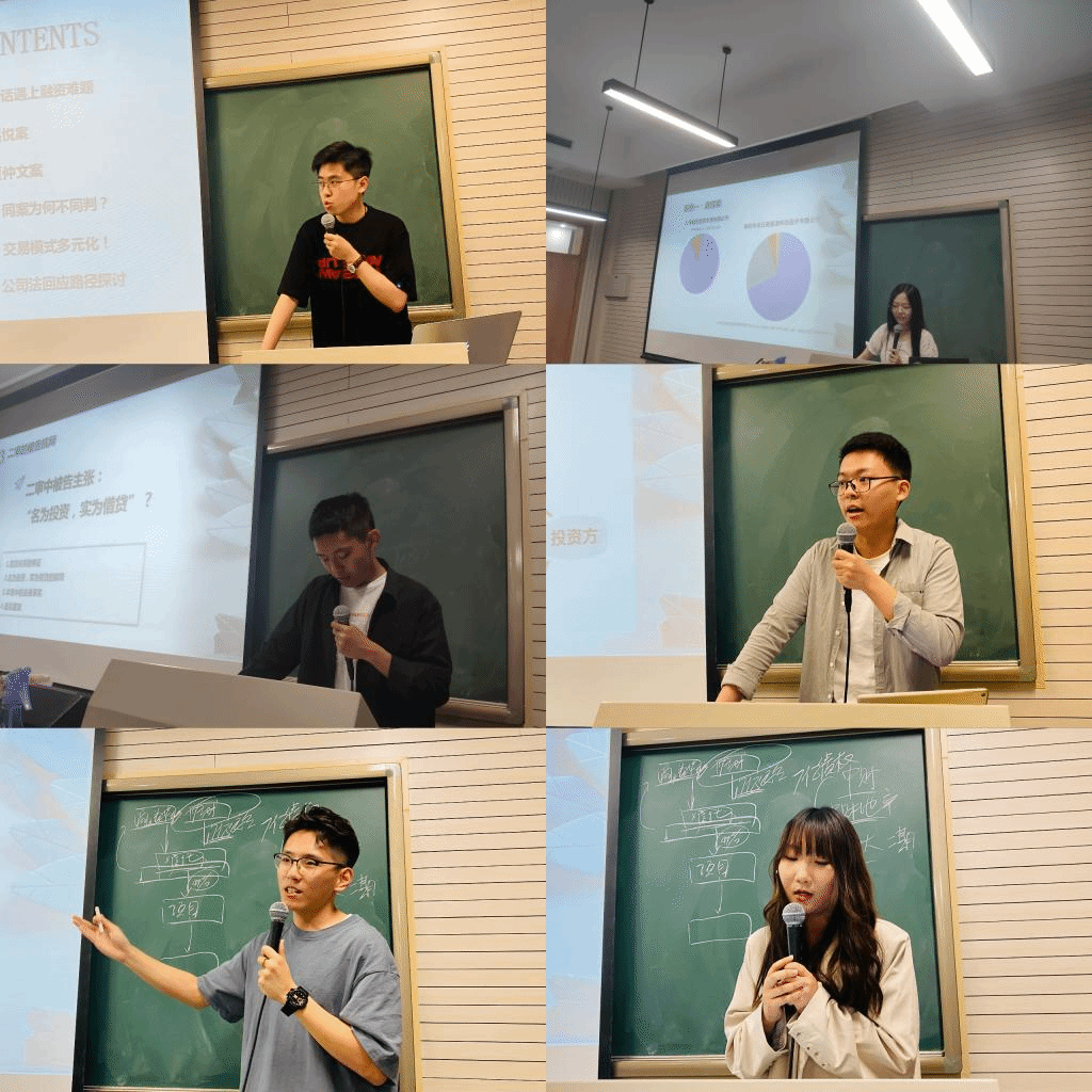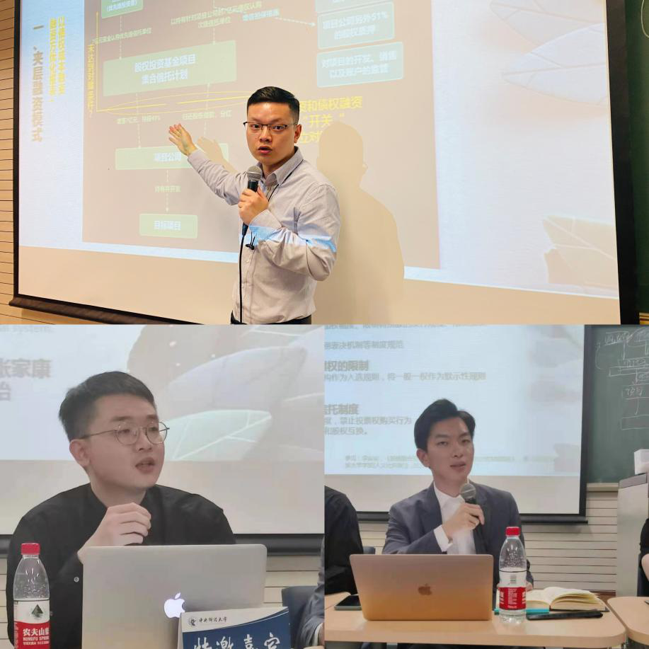 随后,进入发言人展示的主要环节。3522vip浦京集团2020级研究生李昭霖和周家平、2018级本科生任子怡、2019级本科生王长豫和时海腾以及2020级本科生张家康等六位同学对议题进行了介绍和分享。周家平同学指出《公司法》第四条、第一百二十六条、第一百八十六条在理论上对股、债进行了条理清晰的界分,但在实务中融资手段层出不穷,故造成了股债融合的法律困境;王长豫同学分析了“嘉悦案”,并指出“嘉悦案”本质上为名股实债,以投资为名行借贷之实;张家康同学分析了“夏仲文案”,并指出根据该案二审判决显示,法院裁判结果认定该案为名债实股,实质为共同投资的法律关系;时海腾同学对“嘉悦案”与“夏仲文案”存在同案不同判的原因进行了辨析,对两案的裁判依据以及裁判背后的考量进行了对比,并得出股权债识别要素探究的小结;李昭霖同学提出在实务中,交易模式更加多元化与复杂化,并简要介绍了三种常见的交易模式,分别为:夹层融资模式、分级基金模式、资产收益权产品模式;发言最后,任子怡同学讲述了如何用公司法回应路径探析股债识别,并对团队的发言进行了总结。