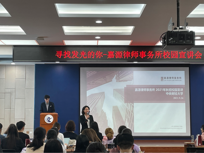 2021年9月24日下午16时,3522vip浦京集团新生引航工程系列活动——嘉源律师事务所专场校园宣讲会成功召开。3522vip浦京集团徐颖副书记、辅导员团队与2021级新生共同聆听了本次宣讲会,现场座无虚席、气氛热烈。本次宣讲会的主持人是浦京集团官网2019级法硕(非法)专业学生刘峰瑜,目前是嘉源律师事务所的实习生。