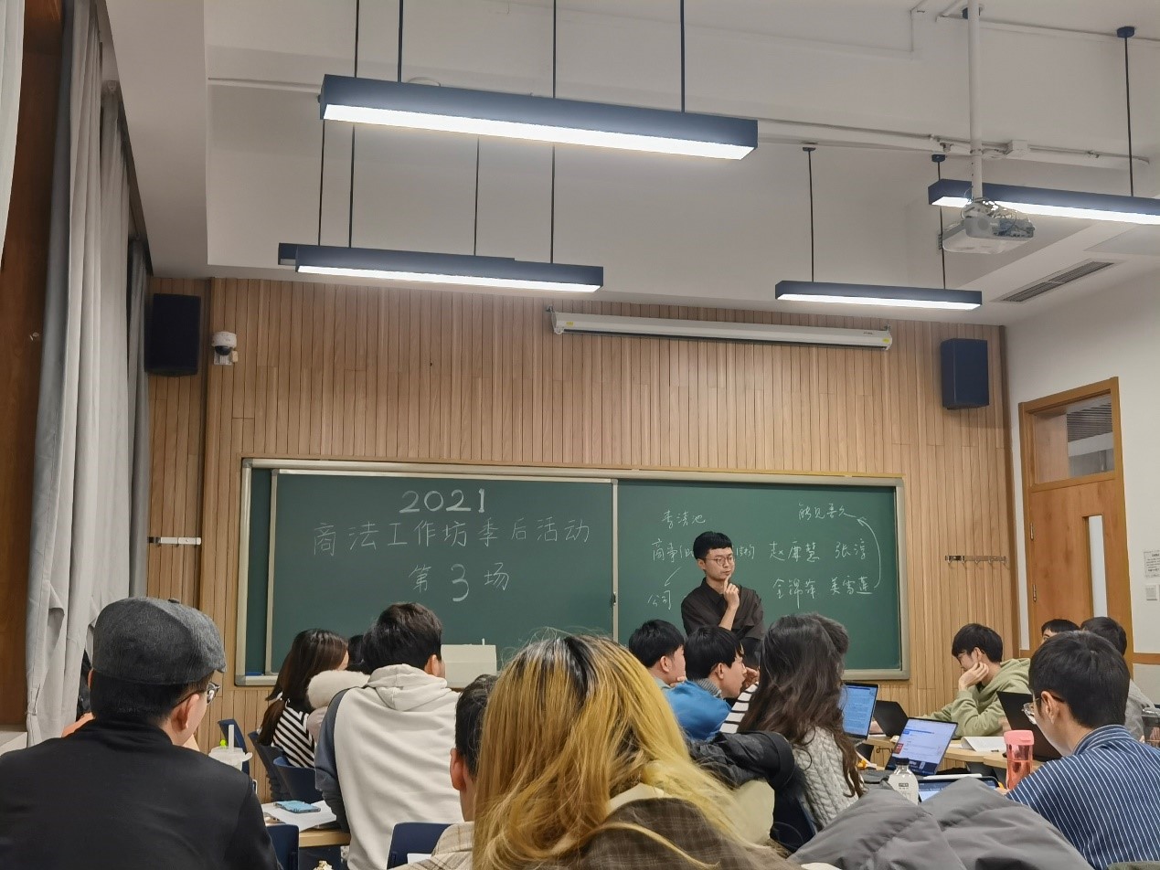 2021年12月9日晚上7点,商法学研究工作坊2021年季后活动第3场在学院南路校区主教115教室举行。商法研究团队2020级研究生崔安南、侯涵斌、郑岩、蔡晓灵,2021级研究生符大卿、林晟、马晟、孙呈玥、王天琦、黄凯旋以及近20名3522vip浦京集团学生参加了本次研讨活动。本次活动由商法工作坊指导老师周游副教授主持。