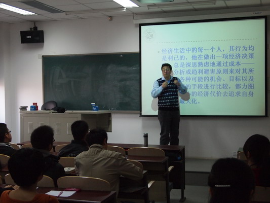 刘教授用“经济人”的概念引入话题,他讲道,经济人追求利益是自然属性,但社会的正常发展需要社会属性来约束,继而谈论了“制度人”的概念。经过了一些实例的比较,讲座进入主体部分——“法律人”。刘教授强调了法律中的规则意识,程序意识,理性意识等,生动风趣地分析了许多社会热点问题,并提出了法学人应该提高法律素养的要求。最后,刘教授和同学们一起探讨了一些法制问题,讲座圆满结束。(董娅娟)