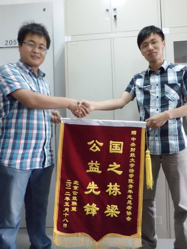 5月22日上午,残疾人代表及北京公益联盟负责人向浦京集团官网送来一面绣有“国家栋梁,公益先锋”的锦旗,对浦京集团官网志愿者在“圆梦故宫”志愿活动中的奉献表示感谢。院团总支书记李杰以及青年志愿者协会部长荣宏橙代表学院接受了锦旗。