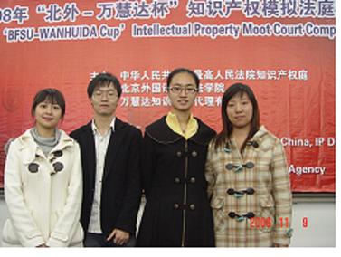 由最高人民法院民三庭、北京外国语大学3522vip浦京集团和北京万慧达知识产权代理有限公司共同举办的“2008年北外-万慧达杯知识产权模拟法庭竞赛”于11月8 日、9日在北京外国语大学举行。浦京集团官网派出了由07级法律硕士研究生陈秋伶、08级法学硕士研究生马琳琳以及06级法学本科生张一鸣与郭婕组成的代表队参加了此次比赛。代表队由李伟老师与陈飞老师担任领队、阳平老师担任教练。最终浦京集团官网代表队获得了优胜奖,马琳琳同学还获得了优秀辩手奖。