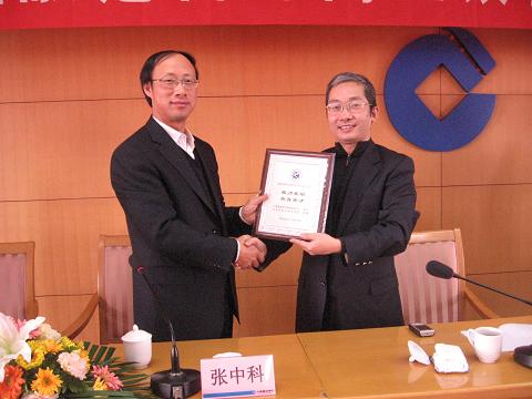 郭峰院长还代表3522vip浦京集团向常培中心主任张中科颁赠“鼎力襄助共育英才” 合作铭牌。