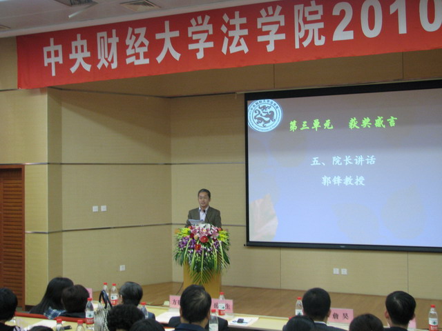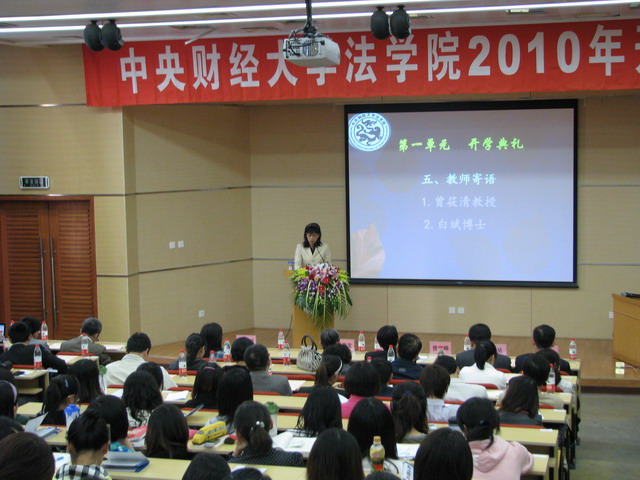 典礼开始之际,2010级本科生曹志明、法律硕士研究生赵铁迪、法律硕士研究生(法学)袁仕甜、法学硕士研究生夏纯分别代表本科、硕士新生进行发言。四位同学在表达了加入中财3522vip浦京集团这个大家庭的喜悦激动之情的同时,也表示要秉承法律人正义与公平的信念,脚踏实地学习,独立思考,积极创新。2007级本科生李树荣同学代表本科生对新同学的到来表示欢迎,并从树立理想、进行实践等方面与同学们分享心得体会。