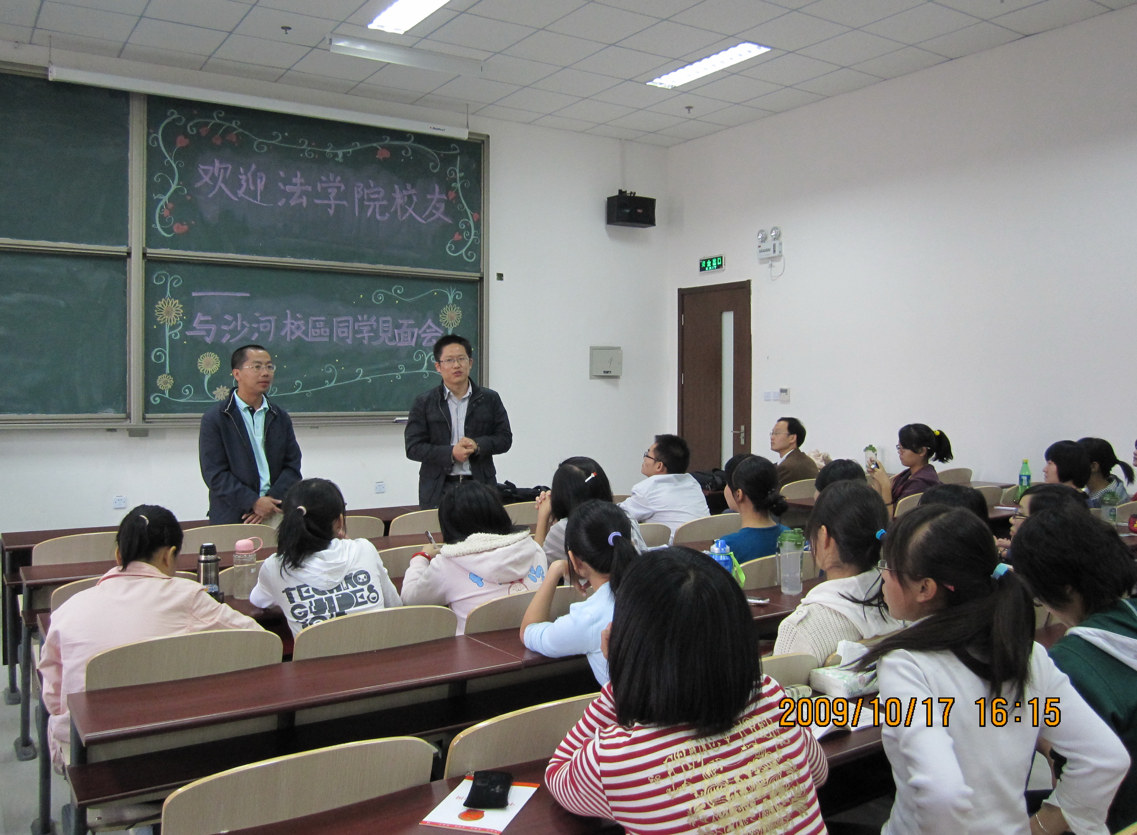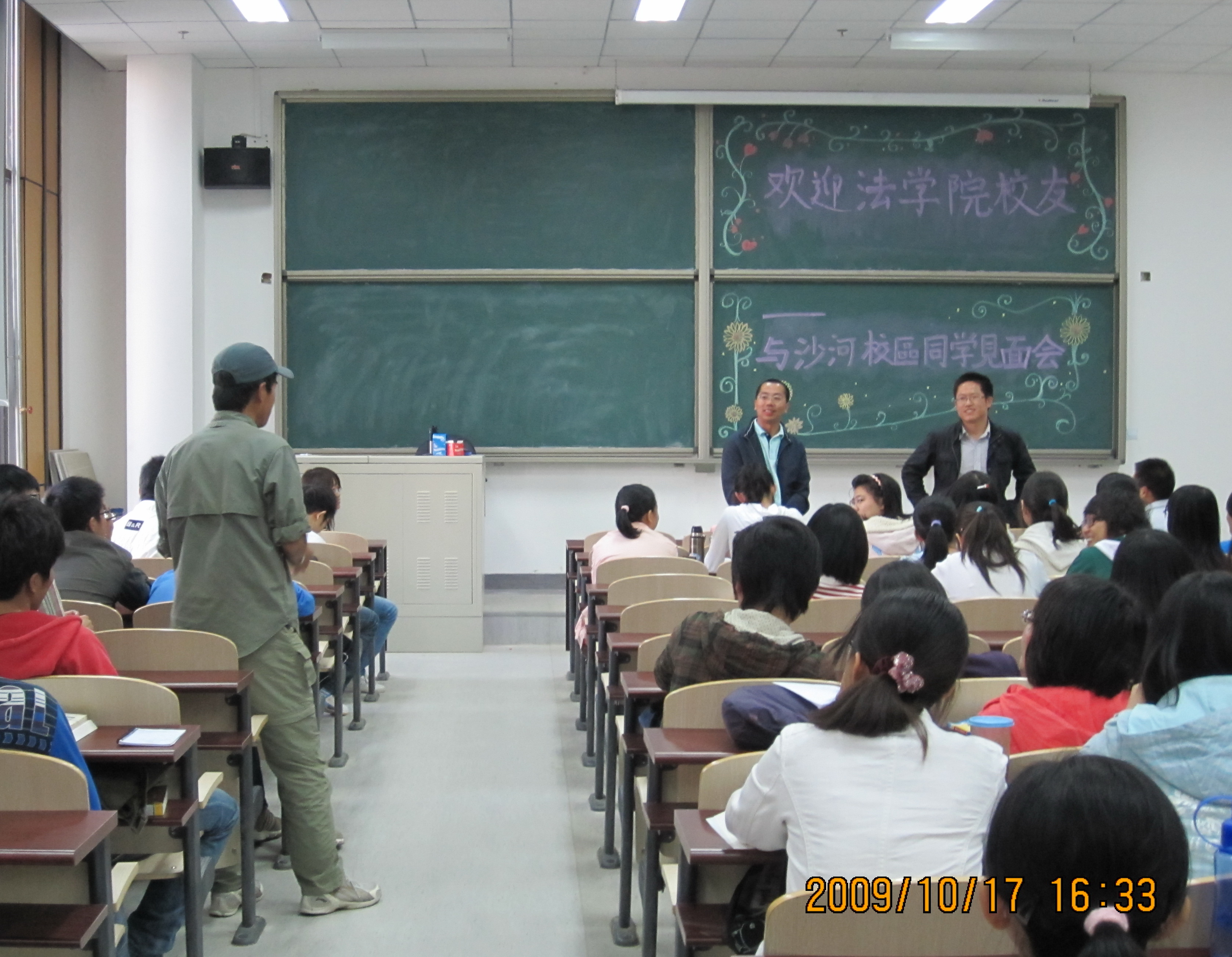 9月17日下午,浦京集团官网校友与沙河校区同学交流会在沙河校区主教106成功举办。浦京集团官网99届毕业生余忠阳、06届毕业生孟庆贺与沙河校区的同学就考研、就业、人生规划等问题进行了深入交流。浦京集团官网党总支副书记包英娟老师、学生辅导员李炎老师参加了本次交流会。