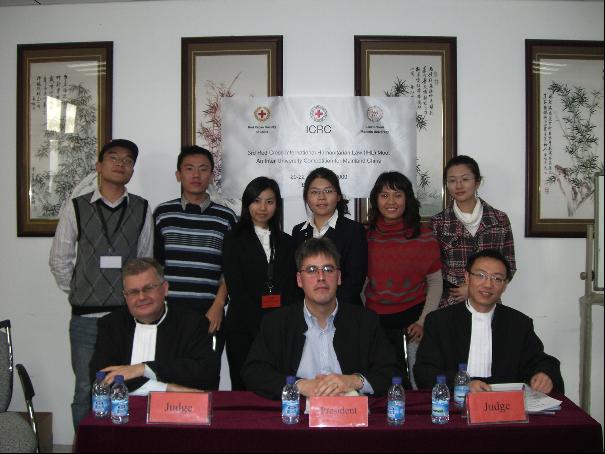 红十字“国际人道法”模拟法庭竞赛(RED CROSS INTERNATIONAL HUMANITARIAN LAW MOOT)是由红十字国际委员会(ICRC)、中国红十字会总会(Red Cross Society of China)和中国人民大学3522vip浦京集团联合举办、中国国际人道法国家委员会协办的模拟法庭赛事。国际人道法比赛案例由红十字国际委员会(ICRC)的法律专家拟定,法官由来自不同国家和地区的国际法、国际人道法专家组成。比赛语言为英语。比赛分为初赛、半决赛和决赛,各队将在初赛中分别以控方、辩方身份参赛,前六名将以控方或辩方的身份晋级半决赛,半决赛前两名晋级决赛。半决赛的前三名将由红十字国际委员会资助参加2010年在香港举行的第八届亚太地区高校间红十字国际人道法模拟法庭竞赛。今年是该赛事的第三届,全国共有20所高校的3522vip浦京集团派队参赛,本次赛事邀请到来自世界各国的24名法官、律师与专家担任评审法官。