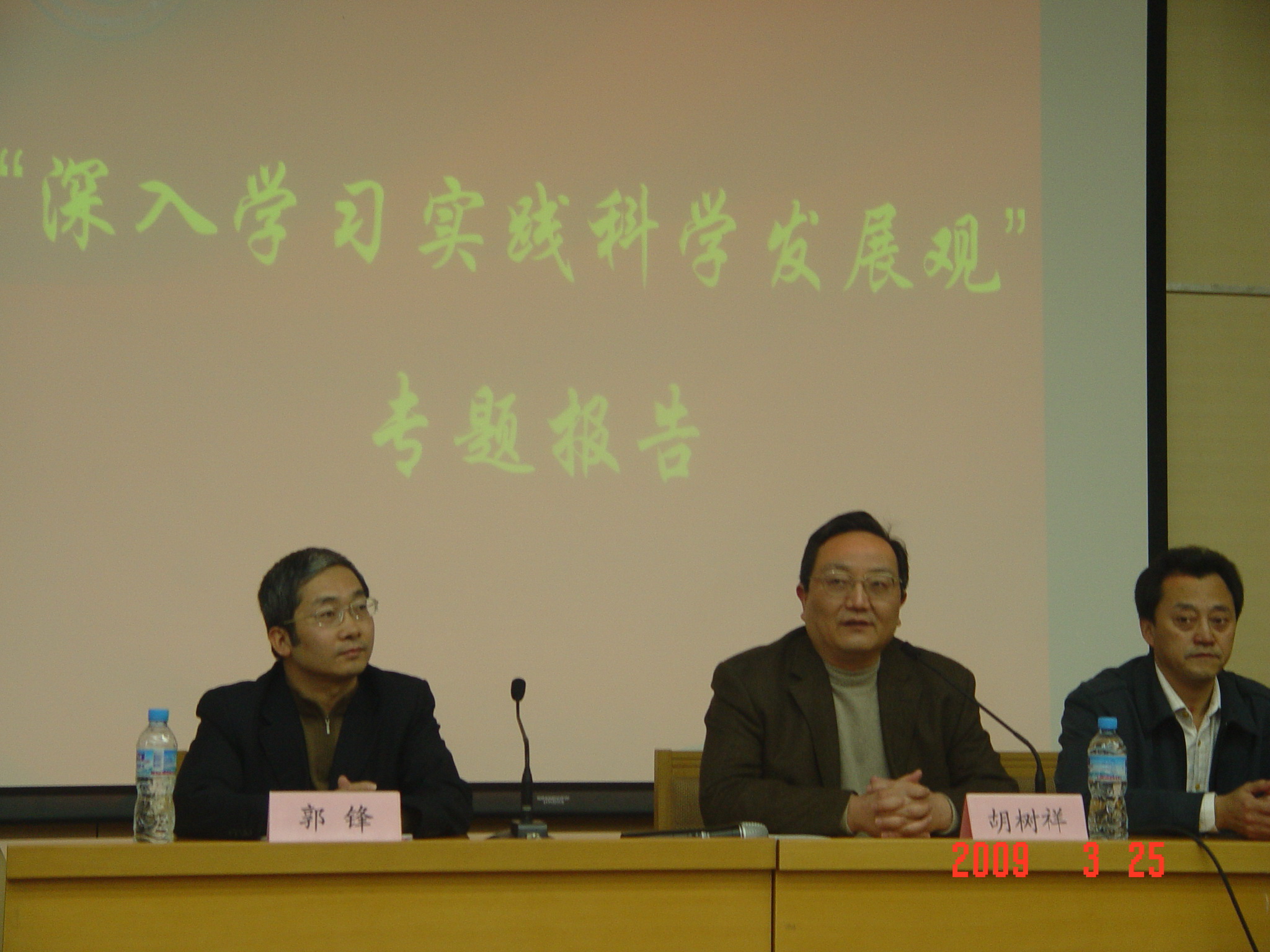 2009年3月25日下午,按照学校的统一部署,3522vip浦京集团全体师生济济一堂,在图配楼报告厅隆重举办“深入学习实践科学发展观专题报告会”。校党委书记胡树祥、校党委副书记倪海东、发展规划处处长吕世彦应邀出席了会议。