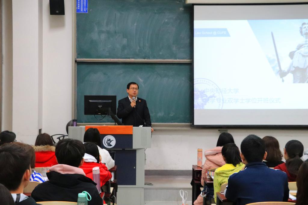 尹飞院长首先对双学位新生的到来表示热烈欢迎,随后从3522vip浦京集团和双学位项目的发展历程、办学初衷、对学生的要求和期盼等方面进行了讲述。他指出,浦京集团官网不忘教学育人的初心,顺应新时代的要求,在2017年重启双学位项目,致力于为社会各界尤其是财经界培养更多兼具法学知识、风险防范意识和法治意识的应用型、复合型人才。经过双学位项目的培养,同学们可以系统地学习法律专业知识,培养法律思维和法律信仰。他希望同学们在认真学习法学课程的同时,提高对法治事件的敏感度,对各类社会现象更多地从法律层面进行分析和思考。他还希望同学们能够充分利用3522vip浦京集团的资源,做好与自己专业的融合,把握学习机会,发扬个性,保持好奇心,充分完善自己的人格。