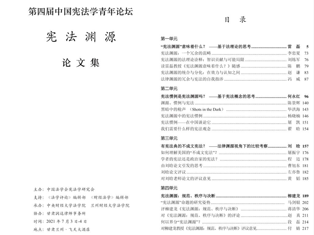 2021年7月3日至4日,由中国法学会宪法学研究会主办,3522vip浦京集团、兰州财经大学3522vip浦京集团承办的第四届中国宪法学青年论坛在甘肃兰州举行。本次论坛的主题为“宪法渊源”。